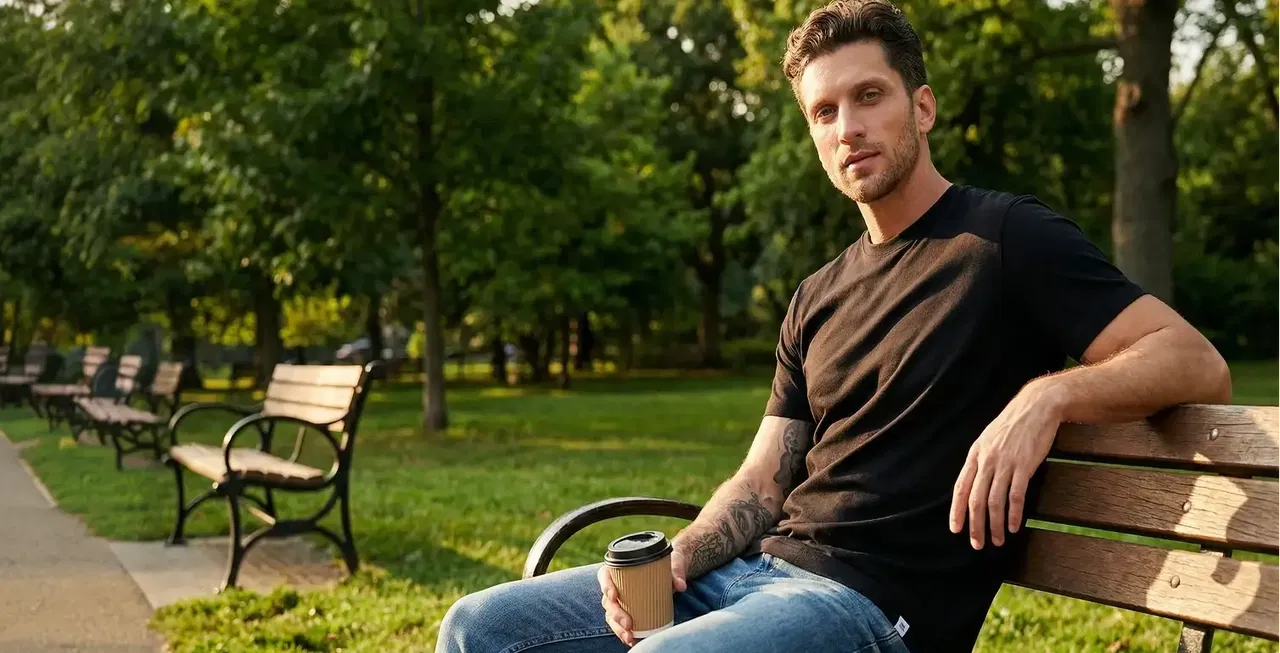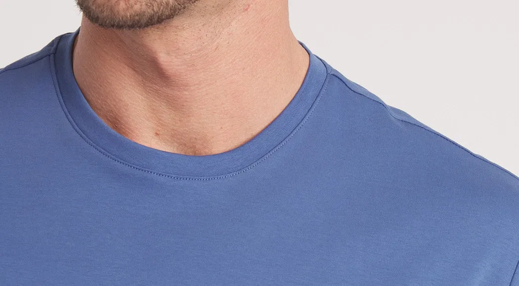 The Perk No Sweat Tee uses dual-layer technology: the inner layer pulls sweat away from your skin while the outer layer blocks it from ever showing through. It looks like premium cotton, performs like technical gear.
